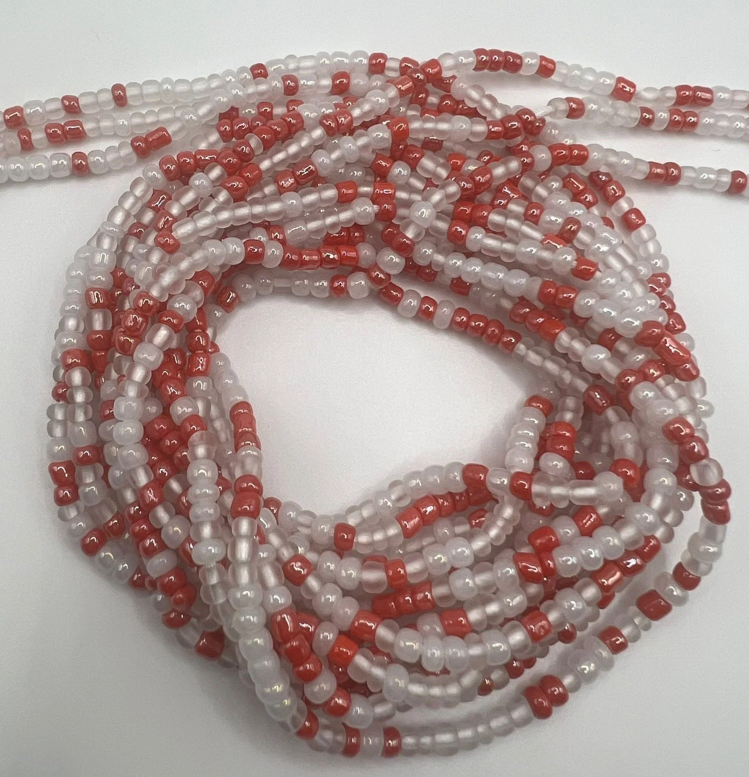 Red Raspberry and Pearl White Colored African Waist Beads